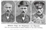 Um diesen Streich auszuf�hren, hatte er zuvor bei Potsdamer Tr�dlern die Uniform eines kaiserlichen Offiziers des Garderegiments gekauft und Soldaten von der Stra�e zu seinen Diensten befohlen. Alle Welt am�sierte sich dar�ber. Unbeabsichtigt legte er damit die wilhelminische Zeit mit ihrem preu�ischen Gehorsam und ihren Untertanengeist blo�.