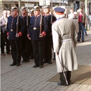 Die Hauptmann-Garde w�hrend ihres Auftritts am 16.10.02 an historischer St�tte